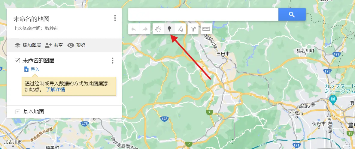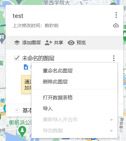 该功能可以将 Google My Map 中的地标导入到当前作品中