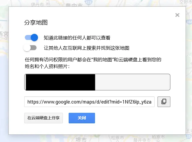 地址格式为:https://www.google.com/maps/d/edit?mid=xxx