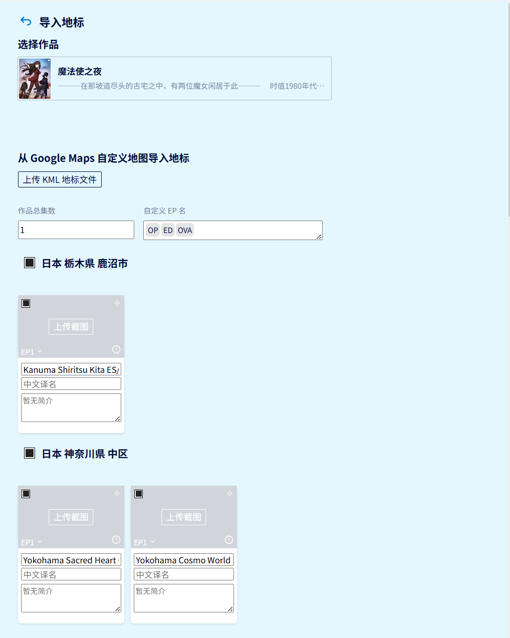 选择要导入的作品,然后点击 上传 KML 地标文件按钮,等待读取