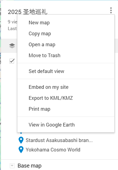 点开一个项目,点击省略号按钮,在菜单里选择 Export to KML/KMZ。